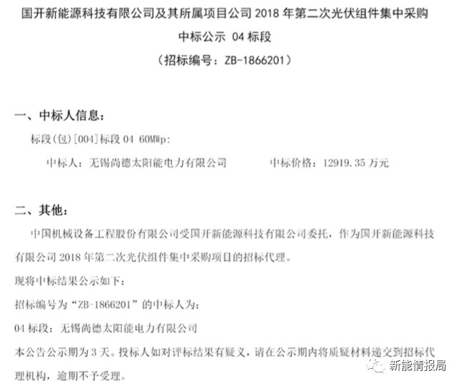 7月28日,國開新能源科技有限公司及其所屬項(xiàng)目公司發(fā)布2018年第二次光伏組件集中采購中標(biāo)公示。