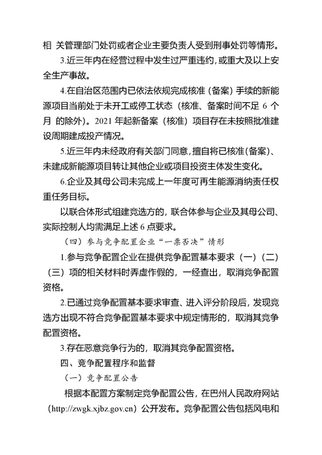 為貫徹落實(shí)碳達(dá)峰、碳中和任務(wù),持續(xù)推動(dòng)巴州風(fēng)電、光伏發(fā)電高質(zhì)量發(fā)展。按照《國(guó)家能源局關(guān)于2021年風(fēng)電、光伏發(fā)電開(kāi)發(fā)建設(shè)有關(guān)事項(xiàng)的通知》(國(guó)能發(fā)新能〔2021〕25號(hào)) 《新疆維吾爾自治區(qū)火電和風(fēng)電、光伏等公共資源開(kāi)發(fā)建設(shè)項(xiàng)目公開(kāi)招標(biāo)選定業(yè)主暫行辦法》(自治區(qū)人民政府第201號(hào)令)《自治區(qū)發(fā)展改革委國(guó)家能源局新疆監(jiān)管辦關(guān)于2021年風(fēng)電、光伏發(fā)電年度開(kāi)發(fā)建設(shè)方案有關(guān)事項(xiàng)的通知》(新發(fā)改能源〔2021〕419號(hào))等法律法規(guī)文件要求,現(xiàn)將巴州2021-2022年保障性并網(wǎng)新能源項(xiàng)目競(jìng)爭(zhēng)性配置公開(kāi)優(yōu)選業(yè)主工作公告如下: