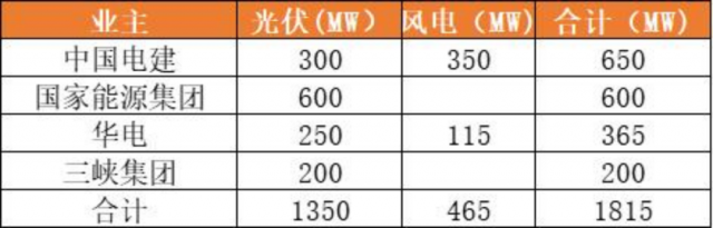 而在儲備項目庫中共9個項目,1.815GW。其中5個光伏項目,共計1.35GW;4個風電項目共計465MW。中國電建650MW,國家能源集團規(guī)模600MW,華電365MW,三峽200MW。具體如下: