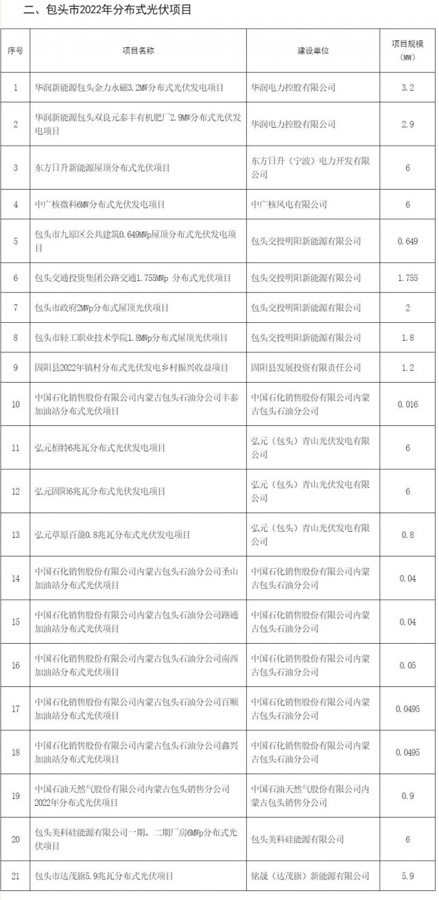 1月10日,內(nèi)蒙古包頭2022年分散式風(fēng)電、分布式光伏發(fā)電項(xiàng)目競爭性配置優(yōu)選結(jié)果的公示。