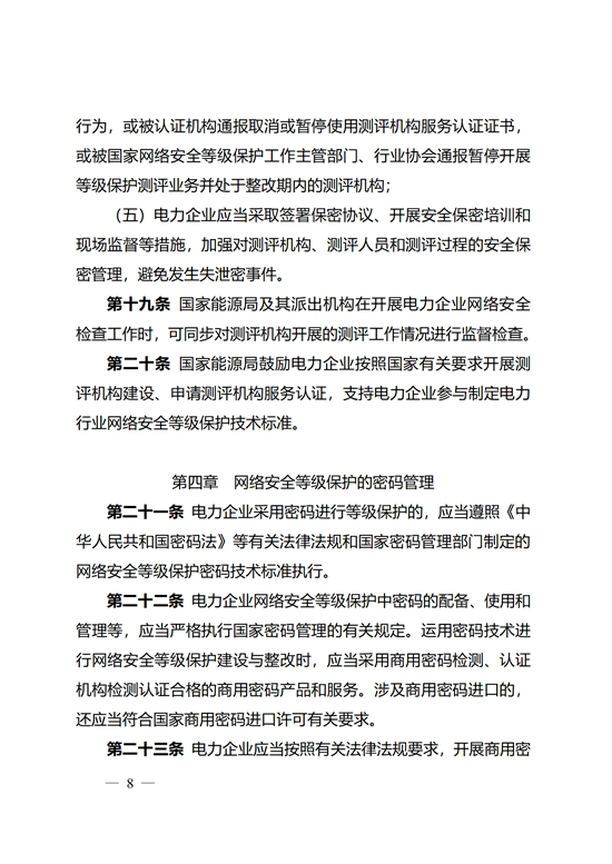 12月12日,國家能源局印發(fā)關(guān)于《電力行業(yè)網(wǎng)絡(luò)安全等級保護(hù)管理辦法》的通知,通知要求,規(guī)范電力行業(yè)網(wǎng)絡(luò)安全等級保護(hù)管理,提高電力行業(yè)網(wǎng)絡(luò)安全保障能力和水平。