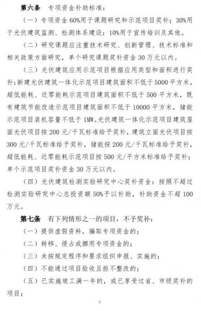 政策中指出,專項(xiàng)資金支持項(xiàng)目范圍為光伏建筑應(yīng)用研究課題,光伏建筑應(yīng)用示范項(xiàng)目建設(shè)(包括光伏建筑一體化應(yīng)用項(xiàng)目建設(shè)、超低能耗建筑及近零能耗建筑建設(shè)、既有建筑節(jié)能改造及儲(chǔ)能項(xiàng)目等),光伏建筑監(jiān)測、檢測體系建設(shè),光伏建筑應(yīng)用宣傳及技術(shù)培訓(xùn)等。