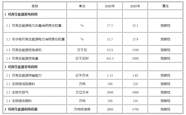 可再生能源總量目標(biāo)?!笆奈濉逼陂g,可再生能源在一次能源消費增量中占比超過50%,到2025年,可再生能源消費總量達(dá)到4700萬噸標(biāo)煤左右。非化石能源占一次能源消費總量比重16%左右。