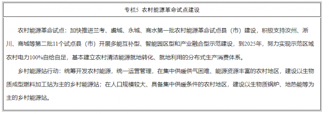 著力將蘭考打造成全國農(nóng)村能源革命典范,持續(xù)推進虞城、汝州等14個農(nóng)村能源革命試點縣(市)建設(shè),探索建立多能互補、城鄉(xiāng)統(tǒng)籌的鄉(xiāng)村能源生產(chǎn)消費新模式。實施鄉(xiāng)村能源站行動,建設(shè)具備農(nóng)村能源診斷檢修、電動汽車充換電服務(wù)、生物質(zhì)成型燃料加工等能力的鄉(xiāng)村能源示范站,提高農(nóng)村能源公共服務(wù)能力。推動農(nóng)村能源數(shù)字化智能化發(fā)展,并與農(nóng)業(yè)農(nóng)村生產(chǎn)經(jīng)營深度融合,提高農(nóng)村智慧用能水平。鼓勵農(nóng)村能源服務(wù)商業(yè)模式和運行機制創(chuàng)新,引導(dǎo)社會主體參與,逐步完善農(nóng)村能源服務(wù)體系。