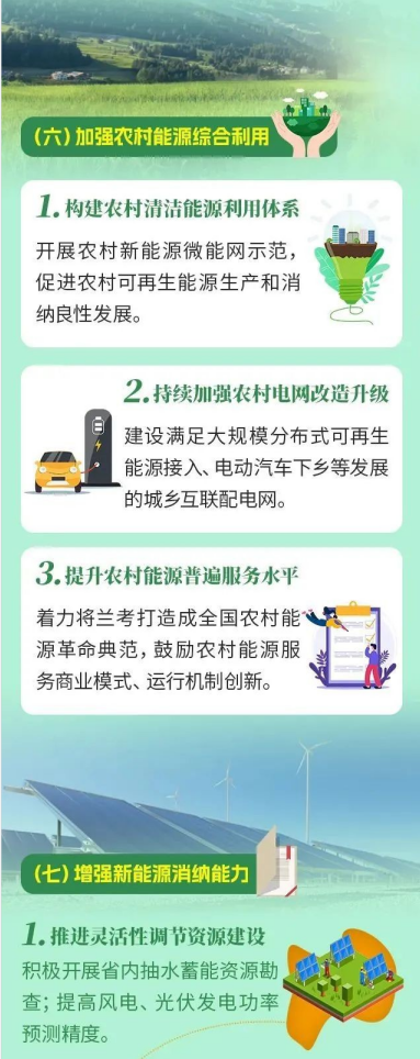 加大農(nóng)村電網(wǎng)基礎(chǔ)設(shè)施投入,加快推進新一輪農(nóng)村電網(wǎng)改造升級,持續(xù)推動脫貧地區(qū)電網(wǎng)建設(shè),專項提升大別山革命老區(qū)配電網(wǎng),統(tǒng)籌偏遠(yuǎn)地區(qū)農(nóng)村能源就地就近利用和配電網(wǎng)建設(shè)。全面提升農(nóng)村電氣化水平,建設(shè)滿足大規(guī)模分布式可再生能源接入、電動汽車下鄉(xiāng)等發(fā)展的城鄉(xiāng)互聯(lián)配電網(wǎng),鞏固鄉(xiāng)村振興電氣化基礎(chǔ)。