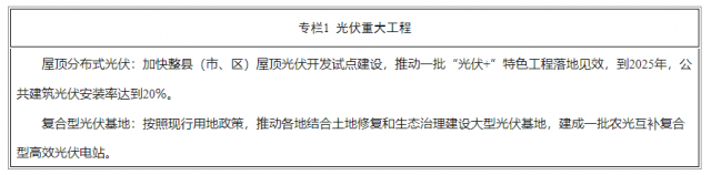 加快整縣(市、區(qū))屋頂光伏開發(fā)試點建設(shè),推動一批“光伏+”特色工程落地見效,到2025年,公共建筑光伏安裝率達(dá)到20%。