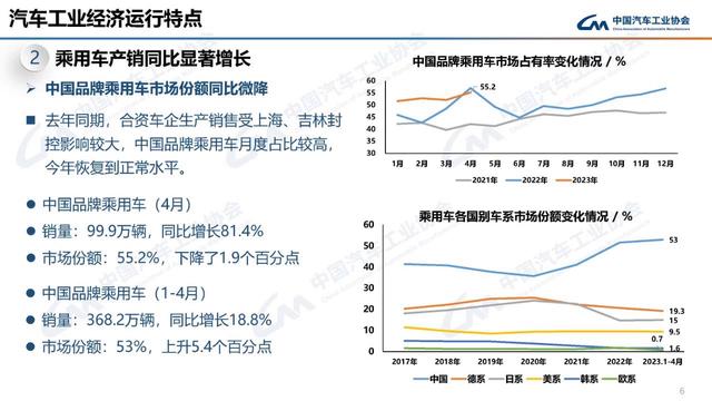 具體看,中國品牌乘用車市場份額同比微降。去年同期,合資車企生產(chǎn)銷售受上海、吉林封控影響較大,中國品牌乘用車月度占比較高,今年恢復到正常水平。