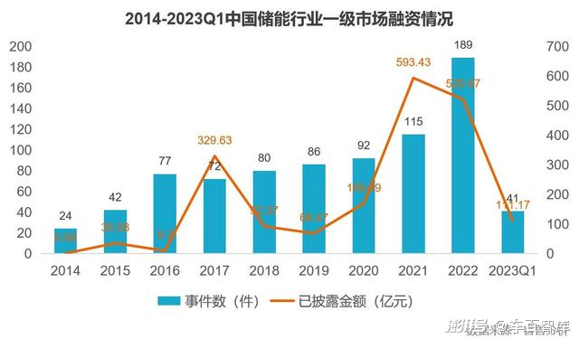 在投融資上,儲(chǔ)能行業(yè)也成為一級(jí)市場投資新熱點(diǎn),其熱度持續(xù)高漲,尤其是2022年,儲(chǔ)能融資處于爆發(fā)期。據(jù)睿獸分析統(tǒng)計(jì),2022年,我國儲(chǔ)能行業(yè)融資事件189件,同比增長64.3%,融資金額520.97億元,也處于高位。