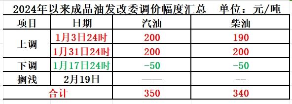 今年以來,國內(nèi)成品油零售限價(jià)已經(jīng)歷四輪調(diào)整,分別為“兩漲一跌一擱淺”。漲跌互抵后,國內(nèi)汽、柴油價(jià)格每噸較去年底分別提高350元、340元。若本輪成品油調(diào)價(jià)政策落地,將是2024年的第三次上漲,今年以來成品油調(diào)價(jià)也將呈現(xiàn)“三漲一跌一擱淺”的格局。
