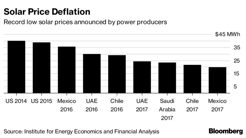根據(jù)彭博新能源財(cái)經(jīng)數(shù)據(jù),IEEFA表示,2017年全球新增太陽能裝機(jī)98吉瓦,中國占53吉瓦。同時(shí),發(fā)電資產(chǎn)使用期間的單位電力成本同比下降15%,至86美元/兆瓦時(shí)。