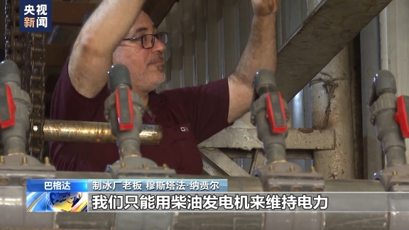 制冰廠老板 穆斯塔法·納賈爾:每供電兩小時會斷電兩小時,在溫度升高時,電力供應會更差,停電會持續(xù)四小時,我們只能用柴油發(fā)電機來維持電力。
