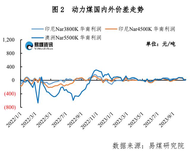 就進(jìn)口市場(chǎng)而言,沿海電廠庫(kù)存環(huán)比回落但依舊位于歷史高位,兩廣地區(qū)和福建庫(kù)存較為充裕,電廠仍以剛需采購(gòu)為主,議價(jià)話語(yǔ)權(quán)較高,但海外煤價(jià)支撐較為堅(jiān)挺,進(jìn)口煤采購(gòu)成本依舊較高,而內(nèi)陸電廠進(jìn)入過冬補(bǔ)庫(kù)時(shí)期,短期內(nèi)貿(mào)價(jià)格維持穩(wěn)定,故短期進(jìn)口煤價(jià)支撐仍在。