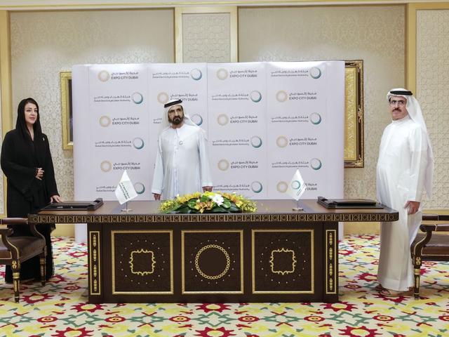 在阿聯(lián)酋副總統(tǒng)兼總理、迪拜酋長謝赫穆罕默德·本·拉希德·阿勒馬克圖姆的見證下,迪拜世博城與迪拜水電局(DEWA)簽署協(xié)議,全力推進(jìn)使用可再生能源為世博城供電。此次合作標(biāo)志著世博城向2050年凈零排放目標(biāo)邁出重大步伐。
