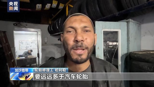 加沙地帶輪胎修理工 哈利勒:我現(xiàn)在修理的馬車或驢車車胎,要遠(yuǎn)遠(yuǎn)多于汽車輪胎。每天我要修30到50輛馬車或驢車的車胎,但只有四五輛汽車來修輪胎。以軍對我們的圍困令我們十分艱難,戰(zhàn)爭令我們感到絕望,我們每天都在經(jīng)歷這一切。我們非常缺水,也缺食物,我們無法過正常的生活。