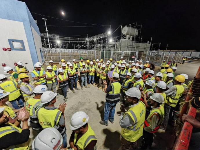 為確保倒送電工作順利完成,項目部科學(xué)組織、精心策劃,積極協(xié)調(diào)業(yè)主方、民防局和埃及電網(wǎng)公司等相關(guān)單位,按照時序計劃,逐步驗收,特別是在倒送電開始前,對相關(guān)部門專業(yè)人員進(jìn)行全面的安全與技術(shù)交底,嚴(yán)格執(zhí)行倒送電調(diào)試措施。在項目業(yè)主和埃及電網(wǎng)公司相關(guān)負(fù)責(zé)人的見證下,整個受電過程順利、可控且受電后各系統(tǒng)設(shè)備運(yùn)行正常,參數(shù)準(zhǔn)確無誤。