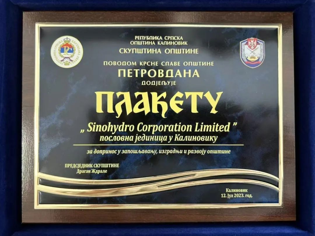 項(xiàng)目的建設(shè)受到當(dāng)?shù)卣母叨戎匾暎?023年,波黑優(yōu)樂高水電站項(xiàng)目部獲波黑卡利諾維克市“杰出貢獻(xiàn)獎(jiǎng)”,這是當(dāng)?shù)卣谟桉v在企業(yè)的最高榮譽(yù),表彰他們履行企業(yè)社會(huì)責(zé)任,為帶動(dòng)當(dāng)?shù)亟?jīng)濟(jì)作出的貢獻(xiàn)。