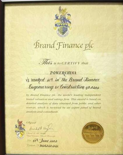 中國電建集團入圍Brand Finance2020全球最有價值50大工程和建設(shè)品牌