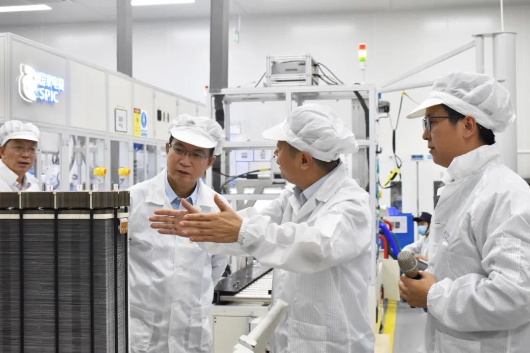 在國氫科技寧波綠動,江毅與寧波市委常委、常務(wù)副市長華偉一同調(diào)研參觀了國家電投華東氫能產(chǎn)業(yè)基地建設(shè)進展等情況。華偉對江毅一行表示歡迎,感謝國家電投對寧波市的支持。他表示,將一如既往支持國家電投在甬發(fā)展氫能產(chǎn)業(yè),積極支持國家電投在甬拓展氫能應(yīng)用。