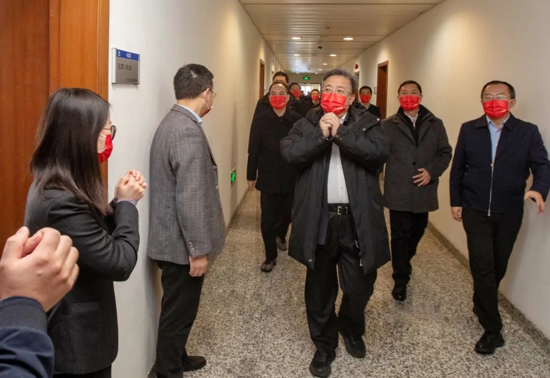慰問期間,余劍鋒一行走進(jìn)辦公室,與同事們互賀新年祝福。