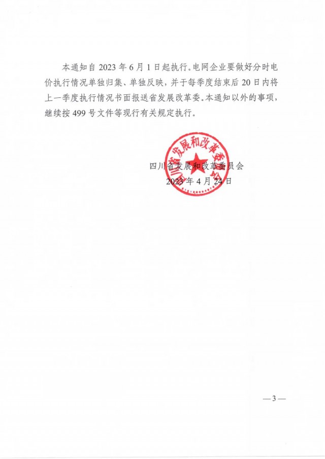 4月24日,四川省發(fā)展和改革委員會(huì)發(fā)布《關(guān)于調(diào)整我省分時(shí)電價(jià)機(jī)制的通知》,對(duì)峰平谷時(shí)段、大型商業(yè)用戶電價(jià)機(jī)制調(diào)整進(jìn)行了說(shuō)明,將在6月1日起執(zhí)行,詳情如下: