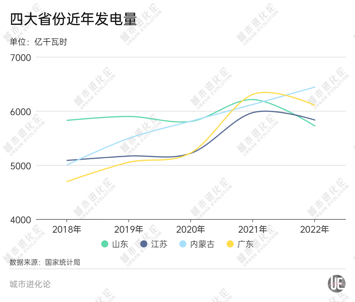 2022年,山東發(fā)電量為5722.6億千瓦時、同比下降3.7%,不僅增速居全國倒數(shù),發(fā)電量與排名第一的內(nèi)蒙古差距也擴(kuò)大到700多億千瓦時。