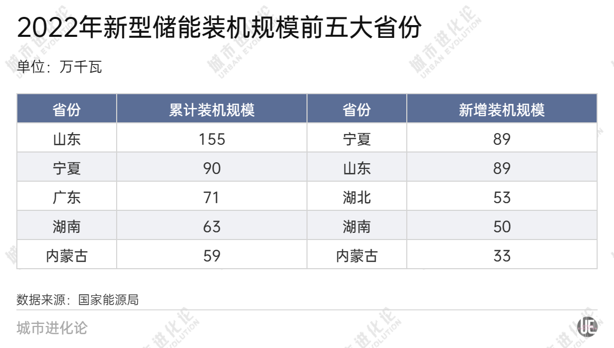 可以看到,累計裝機(jī)規(guī)模僅次于山東的寧夏,去年新增規(guī)模已與山東旗鼓相當(dāng)。按照當(dāng)?shù)匾?guī)劃,到2025年,寧夏力爭新型儲能裝機(jī)規(guī)模達(dá)到500萬千瓦以上,山東則為“達(dá)到500萬千瓦左右”。