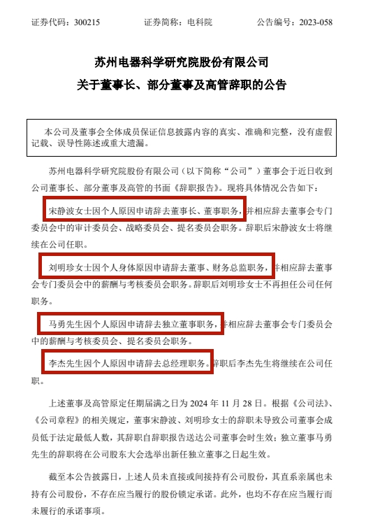 在父子“內(nèi)斗”形勢(shì)明朗,父親胡德霖去世,胡醇及其母成為公司實(shí)際控制人之后,電科院9月1日晚間發(fā)布公告,包括董事長、總經(jīng)理、財(cái)務(wù)總監(jiān)在內(nèi),多人宣布辭職。