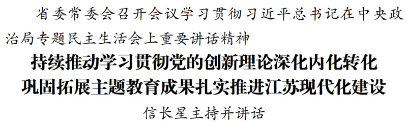 1月8日,江蘇省委常委會召開會議,深入學習領(lǐng)會習近平總書記在中央政治局專題民主生活會上的重要講話和中央通報精神,認真對照檢查,明確改進方向。省委書記信長星主持會議并講話。省委常委同志交流學習體會。會上通報了省委常委會專題民主生活會查擺問題整改落實、主題教育省級層面專項整治情況。