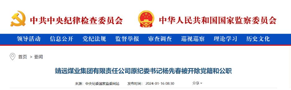 中央紀(jì)委國家監(jiān)委網(wǎng)站1月16日消息,據(jù)甘肅省紀(jì)委監(jiān)委消息:日前,經(jīng)甘肅省委批準(zhǔn),甘肅省紀(jì)委監(jiān)委對靖遠(yuǎn)煤業(yè)集團(tuán)有限責(zé)任公司原紀(jì)委書記楊先春嚴(yán)重違紀(jì)違法問題進(jìn)行了立案審查調(diào)查。