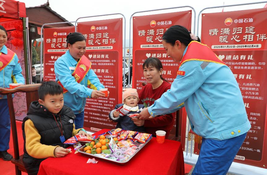 寒冬暖心,“愛”在路上。春運(yùn)期間,廣西銷售成立公益活動(dòng)專班,安排桂林、貴港等地的29座加油站加入今年的春運(yùn)行動(dòng),協(xié)同當(dāng)?shù)卣⒐?huì)、交管等部門聯(lián)動(dòng)服務(wù),為進(jìn)站返鄉(xiāng)客戶提供免費(fèi)姜湯熱茶、煮湯圓、道路指引、應(yīng)急藥箱、進(jìn)站休息等多項(xiàng)暖心服務(wù),溫暖八桂大地返鄉(xiāng)人。
