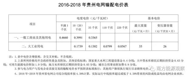 2016年3月7日,國家發(fā)改委批復(fù)了2016年-2018年貴州電網(wǎng)的輸配電價(具體如下表)。