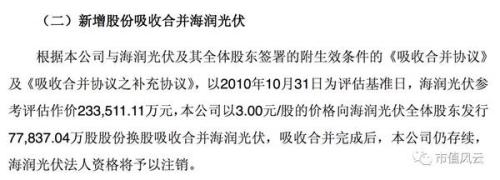 根據(jù)報(bào)告書,原海潤(rùn)光伏2008年、2009年和2010年1~10月實(shí)現(xiàn)的凈利潤(rùn)分別為2.11億、0.26億(據(jù)說是受金融危機(jī)影響)、2.7億,妥妥的優(yōu)質(zhì)資產(chǎn)。