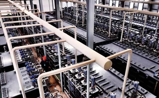 2023年5月,陜西渭南市,在一家新能源企業(yè)的濕法萃取車間,工人巡檢鎳鈷錳鋰萃取工段。該企業(yè)實(shí)現(xiàn)廢舊動(dòng)力電池的梯次利用和再生利用。圖/視覺(jué)中國(guó)