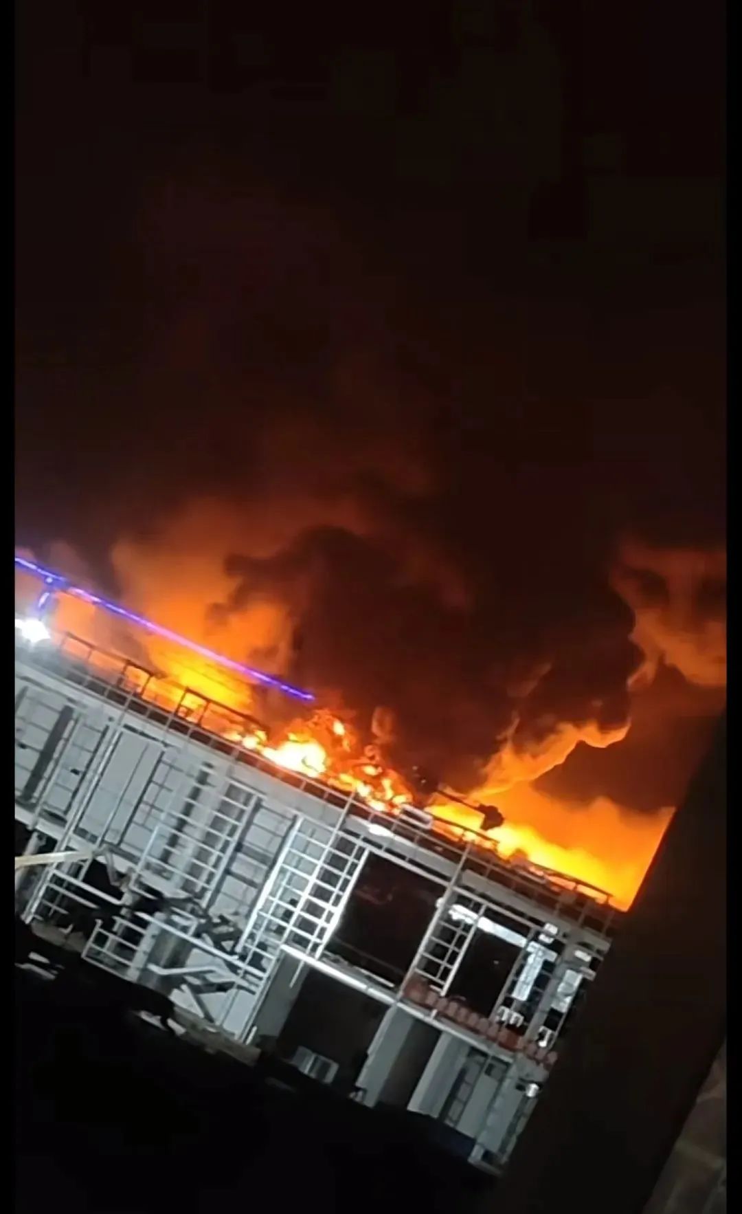 據(jù)多個(gè)視頻顯示,火災(zāi)發(fā)生后,相關(guān)方調(diào)派了多地大批消防車到場(chǎng)滅火,持續(xù)到晚上12時(shí),火災(zāi)仍未撲滅。有消息稱是Pt板著火。