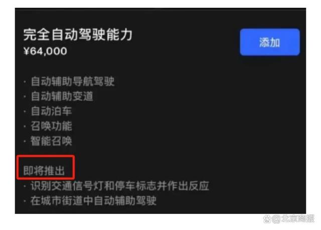 另據(jù)證券時報,根據(jù)特斯拉用戶APP顯示,特斯拉中國官方的FSD服務(wù)的購買頁面描述已經(jīng)由“稍后推出”改為“即將推出”。