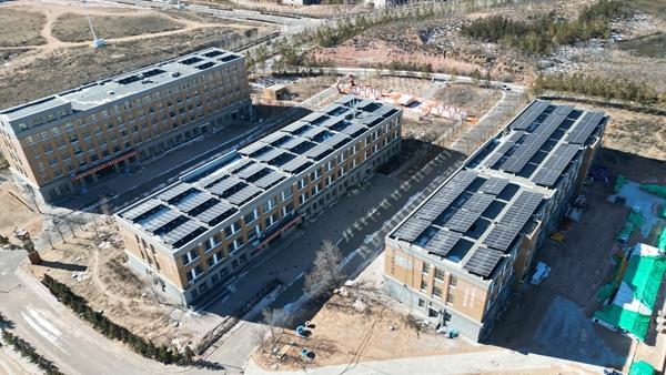 2月7日,鄂爾多斯職業(yè)學(xué)院正在建設(shè)安裝一座容量為0.8MW的光伏電站,為學(xué)院提供綠電供應(yīng)。受訪者供圖