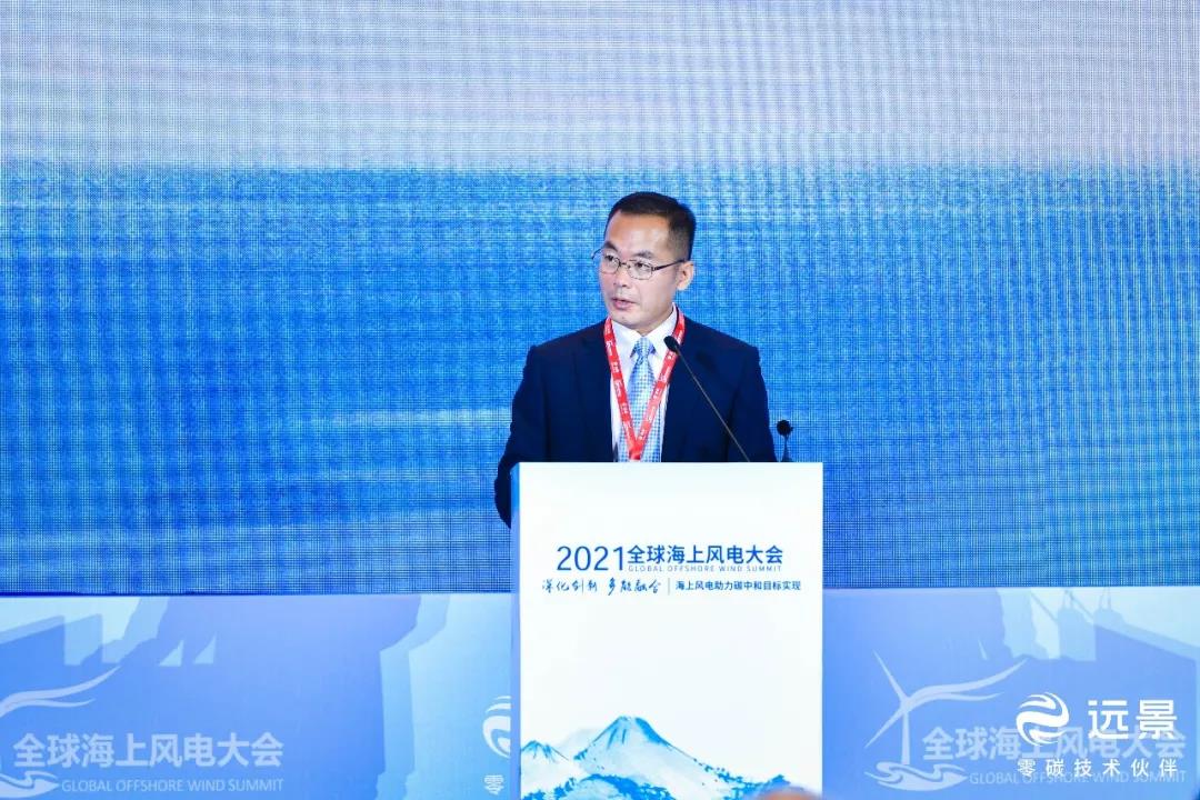遠景能源高級副總裁田慶軍在大會開幕式上發(fā)表演講。田慶軍認為,中國海上風電潛力巨大,3-5年內(nèi)中國所有海域基本都可以實現(xiàn)平價,是沿海經(jīng)濟發(fā)達地區(qū)實現(xiàn)碳中和的必然選擇。