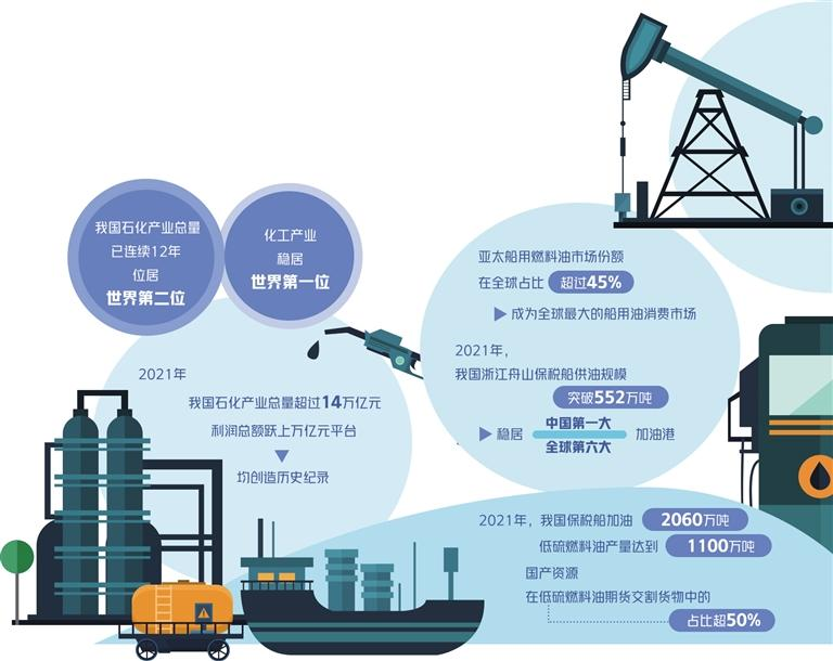 當(dāng)下,全球航運業(yè)加快向綠色可持續(xù)發(fā)展轉(zhuǎn)型。低硫燃料油成為國際船用燃料油市場主流品種。在亞太地區(qū),船用燃料油市場份額占比超過45%,成為全球最大的船用油消費市場。其中,我國浙江舟山又具有特殊地位。2021年,我國浙江舟山保稅船供油規(guī)模已突破552萬噸,穩(wěn)居中國第一大、全球第六大加油港。