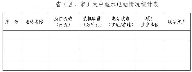 四、請各省、自治區(qū)、直轄市及新疆生產(chǎn)建設(shè)兵團(tuán)能源主管部門梳理本地區(qū)在運、在建的大中型水電站(單站總裝機5萬千瓦及以上)情況,并請于3月15日前將有關(guān)情況反饋我局(新能源和可再生能源司)。