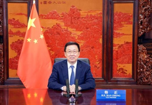 10月18日,中共中央政治局常委、國務(wù)院副總理韓正在北京以視頻方式出席第二屆“一帶一路”能源部長會(huì)議并發(fā)表致辭。新華社記者 殷博古 攝