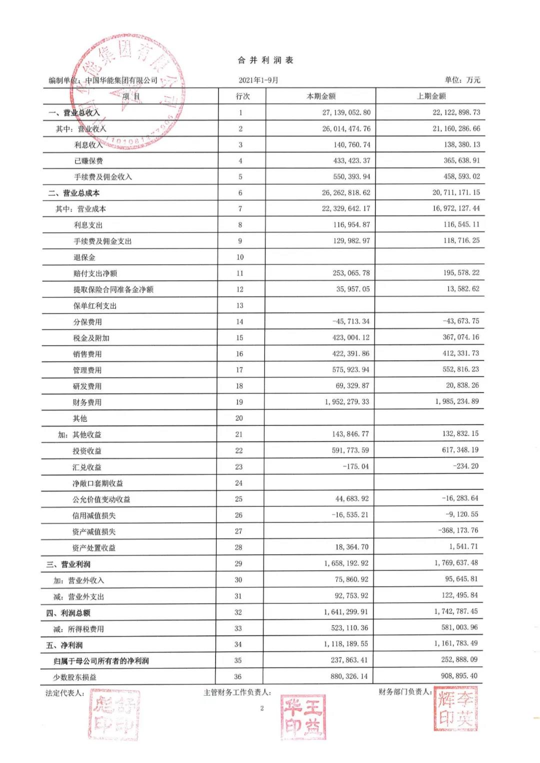 前三季度,華能集團實現(xiàn)營業(yè)總收入2713.9億元,上年同期2212.3億元,同比增長約22.7%;