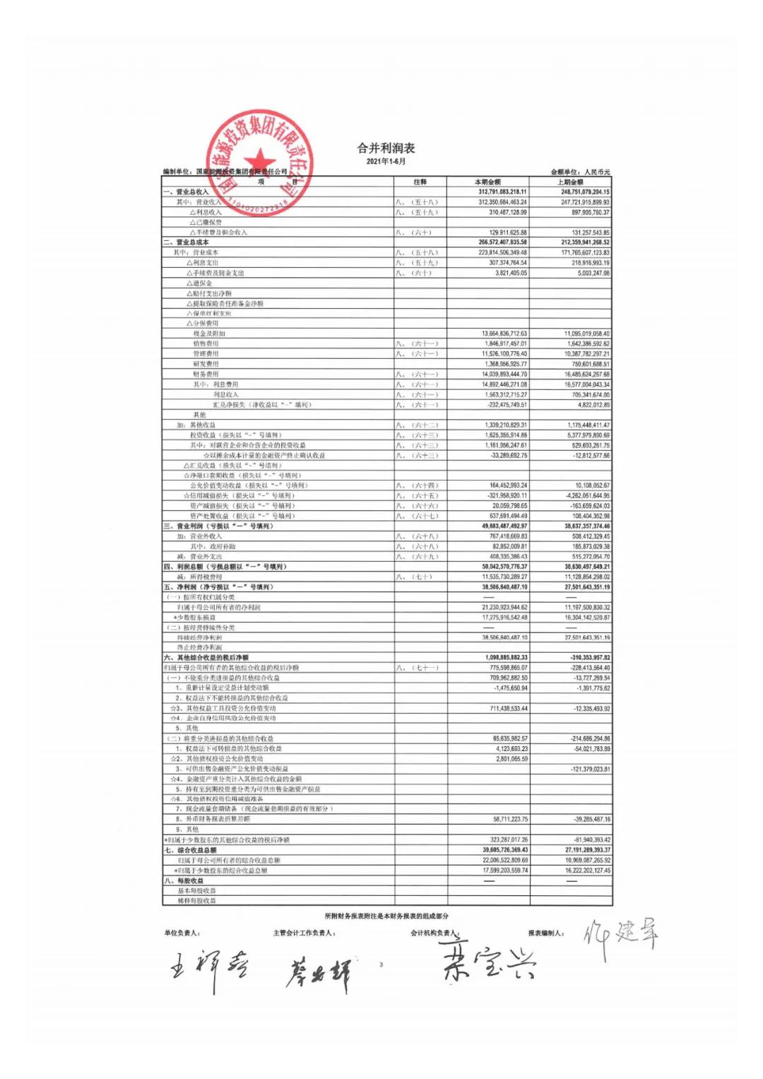 國家能源集團(尚未發(fā)布三季度合并報表,下面是1-6月數(shù)據(jù))