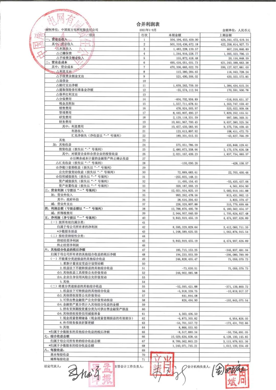 前三季度,南方電網(wǎng)實現(xiàn)營業(yè)總收入5041.9億元,上年同期4243.4億元,同比增長約18.8%;