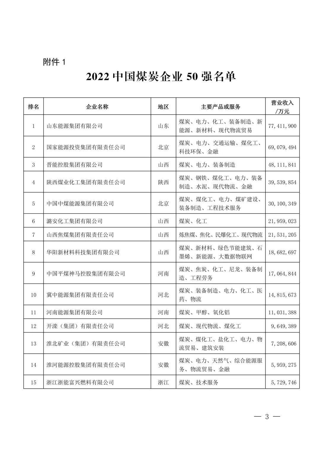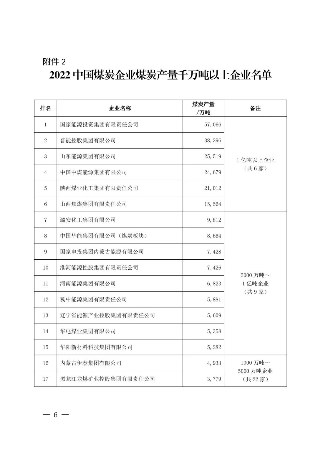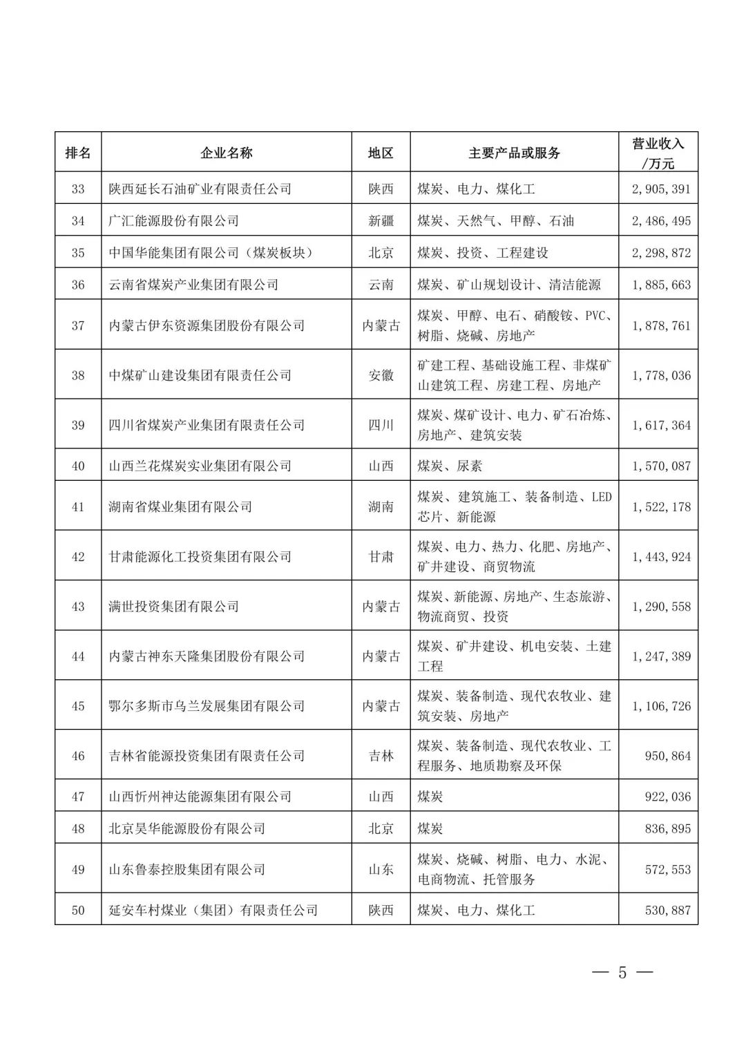 8月5日,中國(guó)煤炭工業(yè)協(xié)會(huì)發(fā)布2022中國(guó)煤炭企業(yè)50強(qiáng)和煤炭產(chǎn)量千萬(wàn)噸以上企業(yè)名單。排名先后依據(jù)營(yíng)業(yè)收入而非煤炭產(chǎn)量。