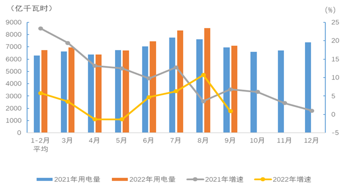 圖4 2021、2022年重點行業(yè)分月用電量情況
