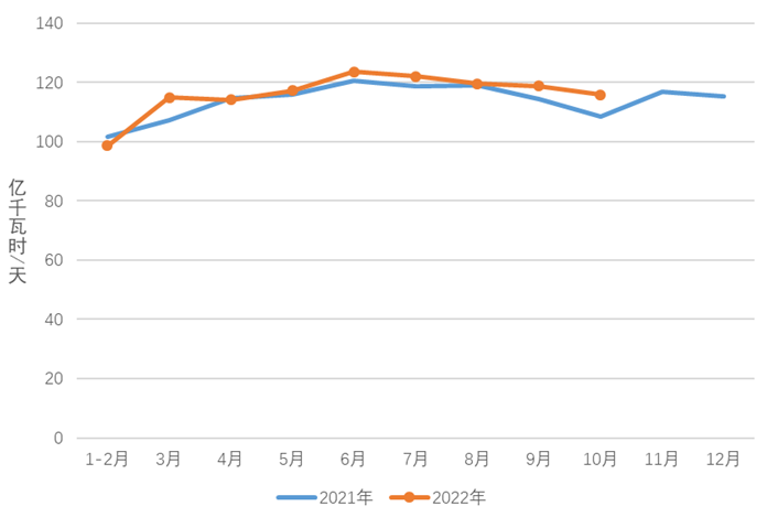 圖3 2021、2022年分月制造業(yè)日均用電量