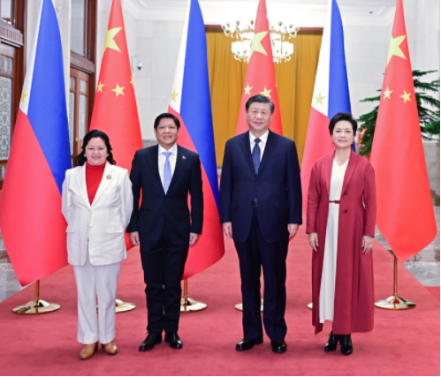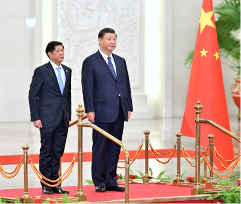 習(xí)近平歡迎馬科斯就任菲律賓總統(tǒng)后首次訪華。習(xí)近平指出,這是你首次正式訪問東盟以外國家,你也是今年中方接待的首位外國領(lǐng)導(dǎo)人。這充分體現(xiàn)了中菲關(guān)系的密切程度,也說明雙方在彼此外交格局中占有重要位置。中菲是一衣帶水的近鄰。在兩國上千年交往史上,以誠相待、守望相助始終是中菲關(guān)系主流,也是兩國人民共有的寶貴精神財富。48年前,你的父親同中國老一輩領(lǐng)導(dǎo)人洞察時局、順應(yīng)大勢,共同作出中菲建交的歷史性決定。此后近半個世紀(jì),無論國際風(fēng)云和菲律賓國內(nèi)政局如何變化,你和你的家族一本初衷,矢志推動中菲友好,這份情誼彌足珍貴。希望你這次訪華不僅是一次“懷舊之旅”,更是一次“開創(chuàng)之旅”。中方始終把菲律賓放在周邊外交優(yōu)先方向,堅(jiān)持從戰(zhàn)略和全局高度看待中菲關(guān)系。我愿同你保持經(jīng)常性戰(zhàn)略溝通,全面規(guī)劃雙邊關(guān)系下步發(fā)展,做互幫互助的好鄰居、相知相近的好親戚、合作共贏的好伙伴,為兩國人民帶來更多福祉,為地區(qū)和平穩(wěn)定貢獻(xiàn)更多正能量。