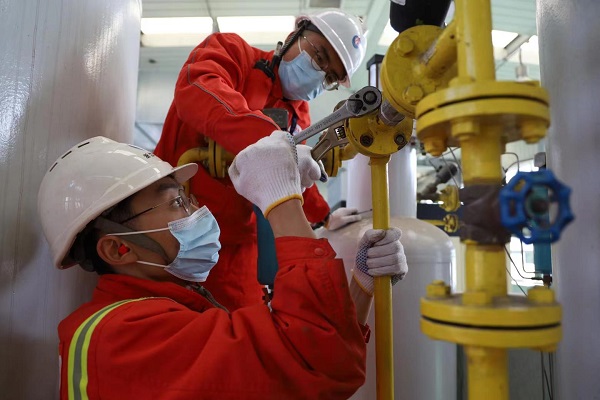 廣東管道高欄港分輸站員工對(duì)站內(nèi)設(shè)備進(jìn)行檢查。