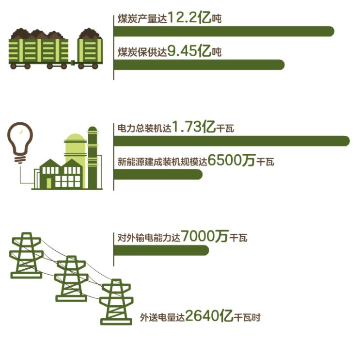 2022年,內(nèi)蒙古自治區(qū)能源經(jīng)濟(jì)多項指標(biāo)在全國保持領(lǐng)先——煤炭產(chǎn)量達(dá)到12.2億噸,電力總裝機(jī)達(dá)到1.73億千瓦,新能源建成裝機(jī)規(guī)模達(dá)到6500萬千瓦,煤炭保供達(dá)到9.45億噸,外送電量達(dá)到2640億千瓦時,對外輸電能力達(dá)7000萬千瓦。