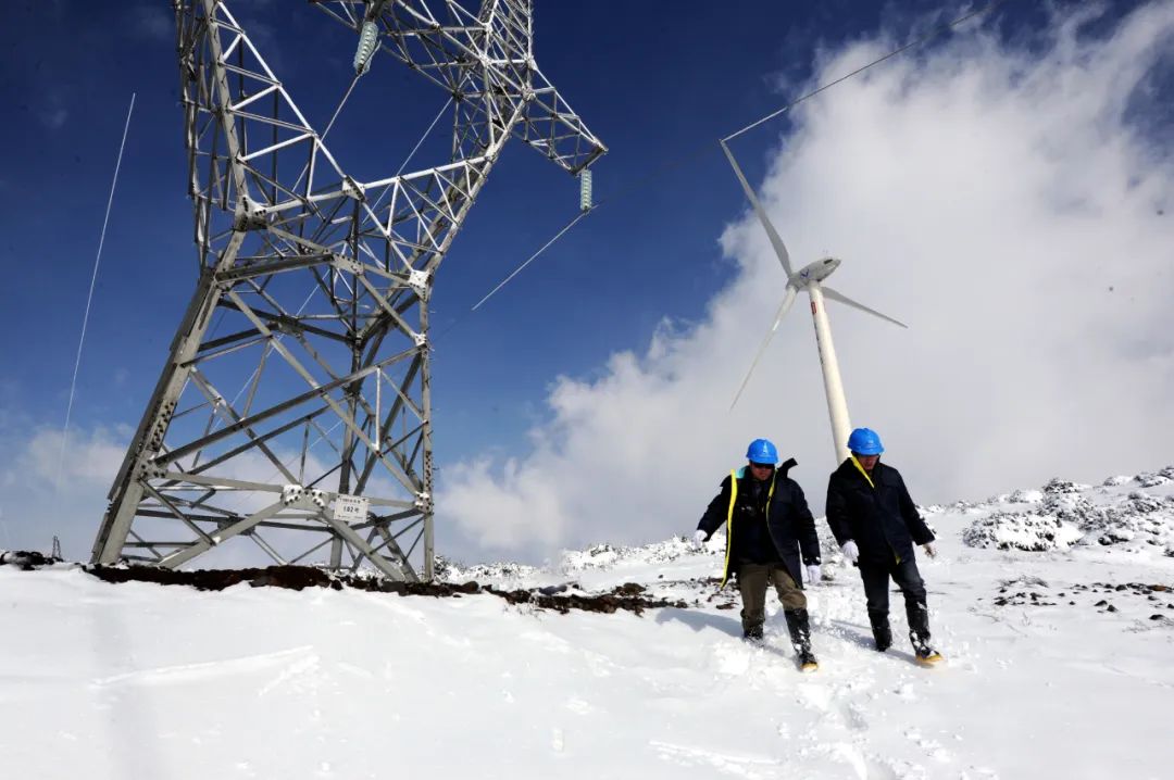 南方電網(wǎng)用“一張表”推進(jìn)各個(gè)治理主體履職盡責(zé)。圖為南網(wǎng)貴州六盤水供電局員工在海拔2500多米的六盤水市四格風(fēng)電場(chǎng)巡視檢查風(fēng)力發(fā)電輸出線路。(李泵 攝)